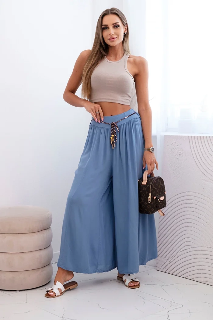These exceptional wide women's viscose trousers are a perfect choice for women who value comfort and style. Made from lightweight, breathable fabric, they drape beautifully on the figure, ensuring all-day wear comfort. The wide leg gives them a trendy, holiday vibe, while the included braided belt adds unique charm and accentuates the waist.