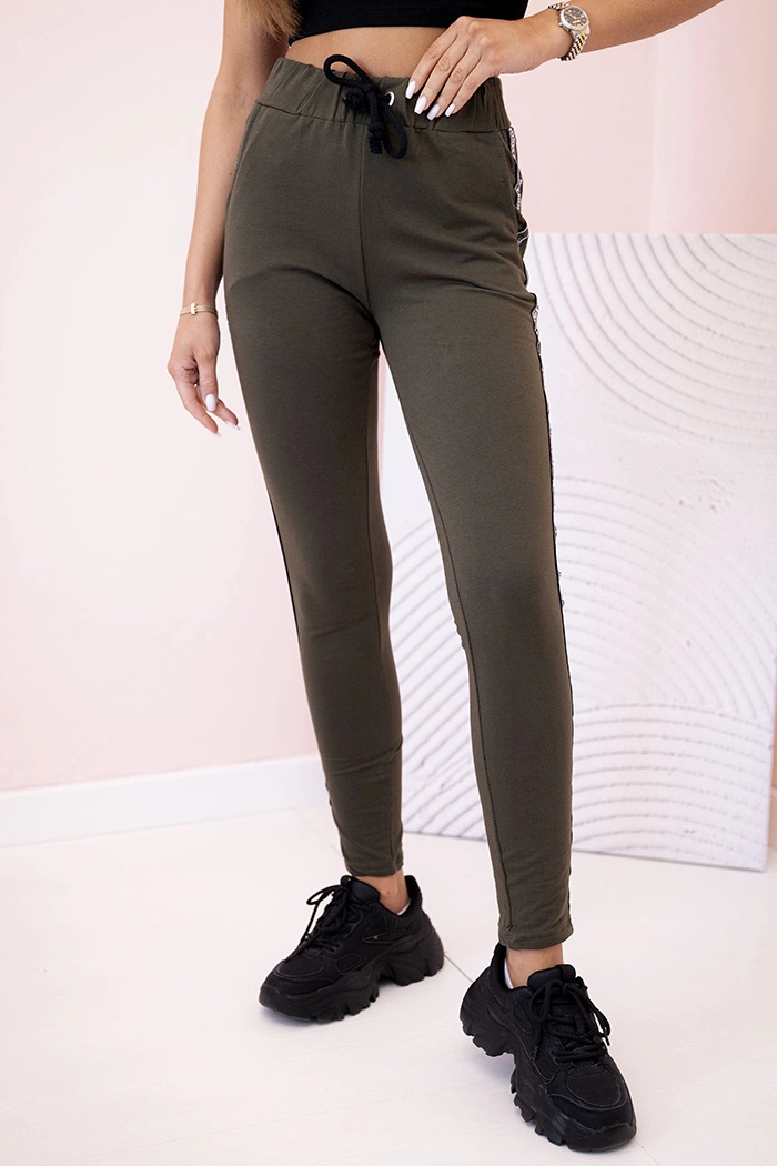 If you value comfort, style, and sporty elegance – these women's sweatpants are the perfect choice for you! Made of soft cotton with a touch of elastane, they fit the body perfectly while allowing full freedom of movement. The elastic waistband with a drawstring ensures a perfect fit, and the decorative side stripe with writing adds a modern, urban touch. These pants are perfect for everyday wear, school, remote work, or an active walk. You can pair them with a classic T-shirt or sweatshirt to create a comfortable yet fashionable look. A versatile option for women who like to look stylish even in sporty outfits. The size is universal and suitable for women wearing S, M, or L.