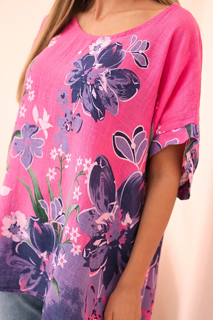 Embrace comfort and feminine style with this women's short-sleeve blouse featuring a stunning floral print. Made from 100% cotton, this model is the perfect choice for warmer days – the natural material ensures breathability and comfort throughout the day. The loose fit makes the blouse flattering on any figure, while its floral pattern adds charm and freshness. It pairs wonderfully with jeans, a light skirt, or shorts. A great option for a walk, shopping, or everyday meetings. Italian production guarantees quality and attention to detail. The size is universal and will be suitable for women in sizes S, M, or L.