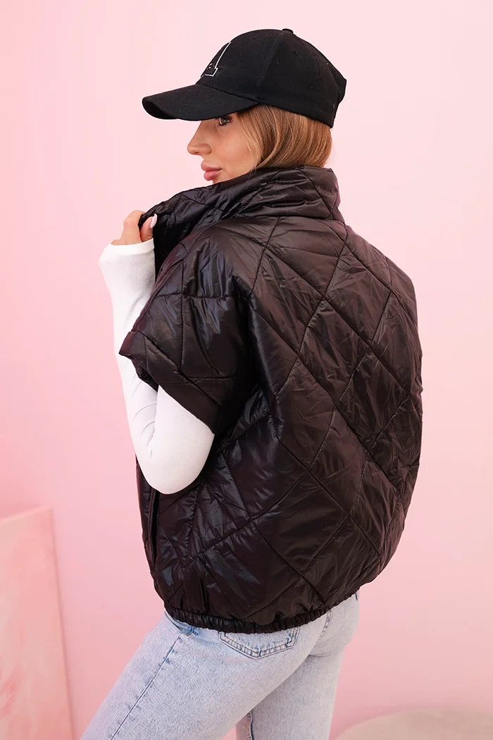 If you are looking for original and practical outerwear for the transitional season, this women's short-sleeve quilted vest is an excellent choice. The fashionable cut with wide shoulders and a comfortable collar make it perfect for both everyday and more casual outfits. Thanks to the zipper, you can quickly put it on, and the elastic finish at the bottom ensures a perfect fit to your figure. Made from high-quality material, it provides comfort and protection against the cold. The universal design works great as an alternative to a classic jacket or sweatshirt. The size is universal and will be suitable for women in sizes M, L, or XL.