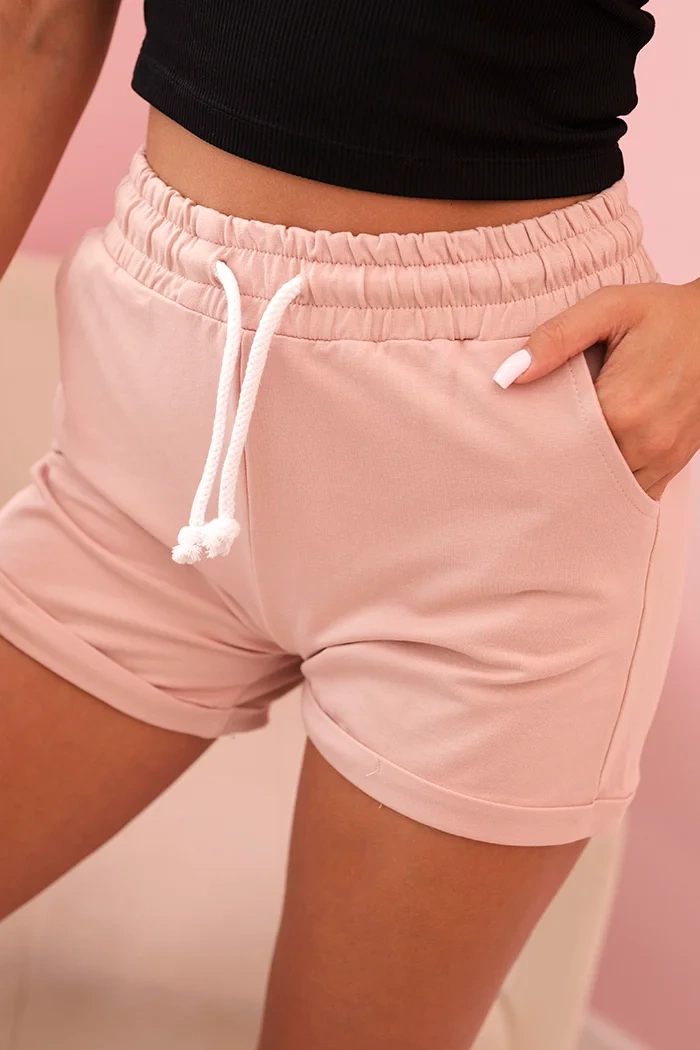 Women's cotton shorts with an elastic band and a tie at the waist dark powder pink