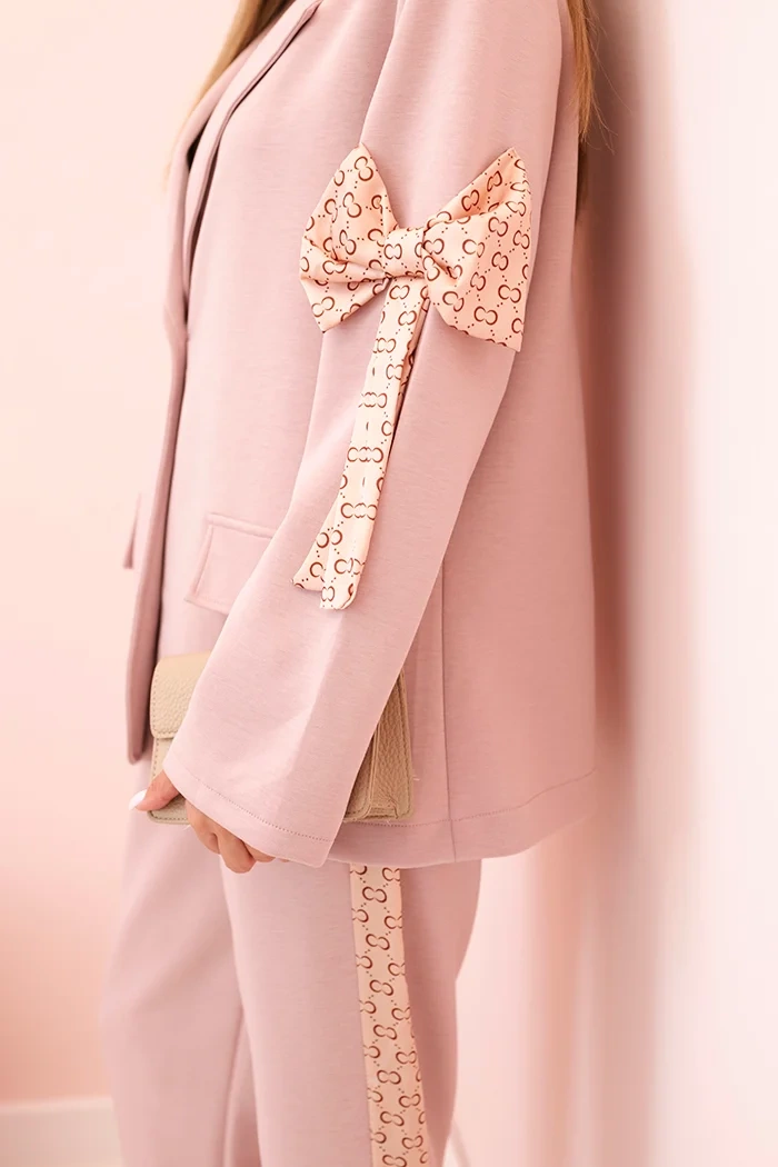 Women's set with viscose – blazer with lapels and pants with a stripe dusty pink