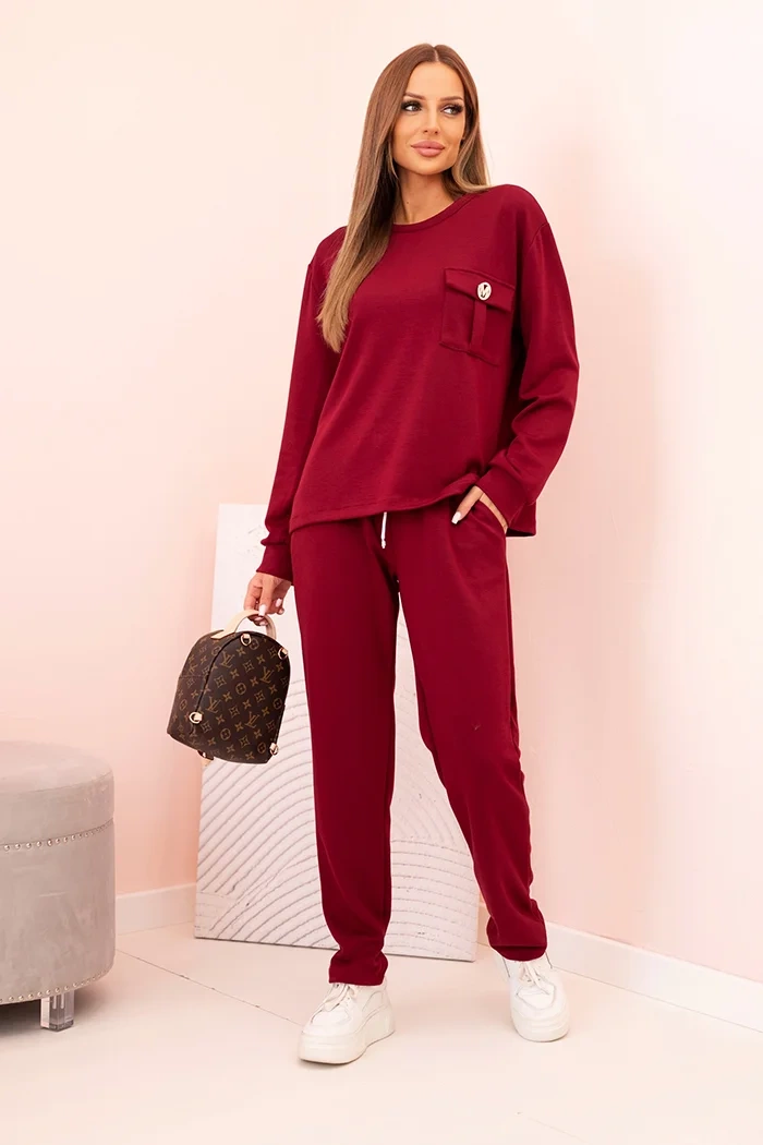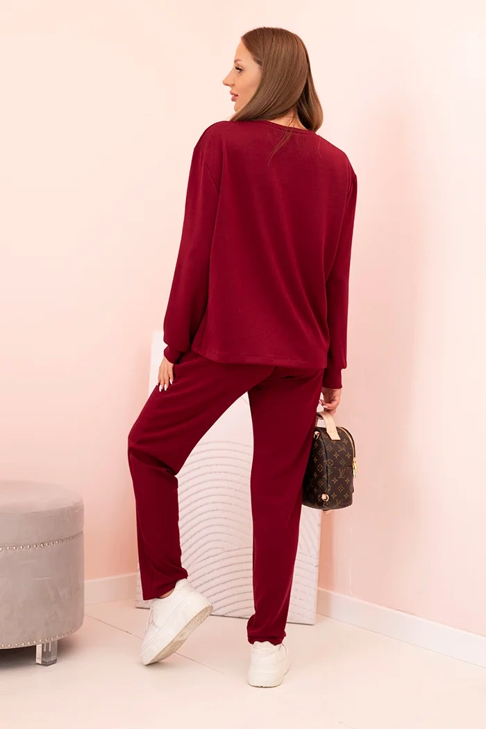 Set women's buttery sweatshirt and pants with elastic burgundy