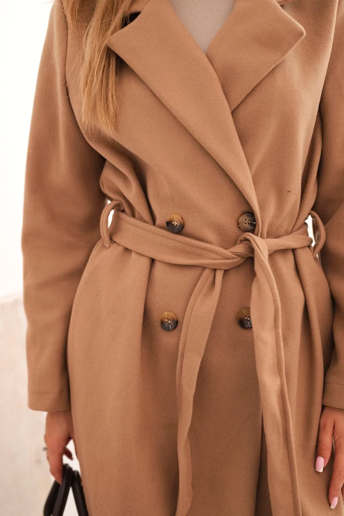 An elegant women's suede coat is a classic that never goes out of style. Made from soft suede-like material, it looks incredibly stylish and feminine. The simple cut with a belt at the waist beautifully highlights the silhouette, while the knee-length adds elegance to the overall look.