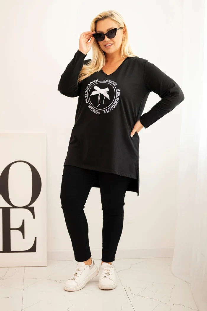 Women's blouse with a longer back and print black