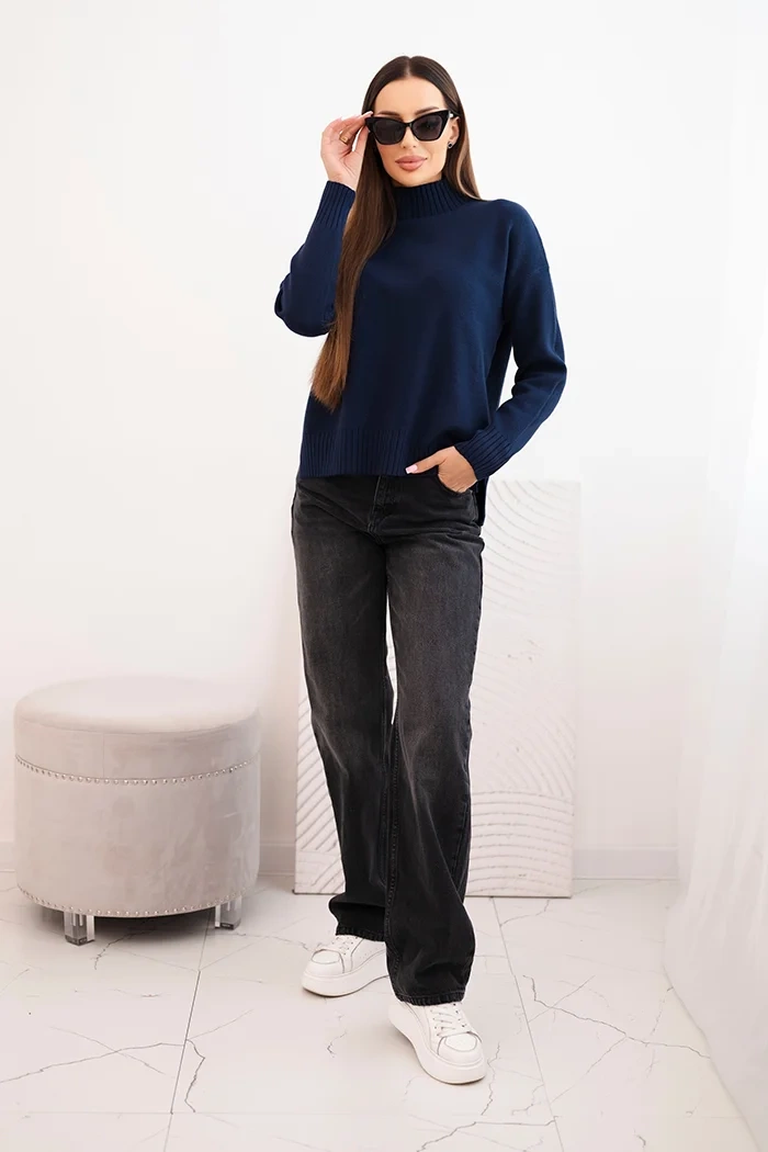 This women's sweater with a mock turtleneck is an excellent choice for cooler days – it combines comfort, a trendy look, and high-quality craftsmanship. Made from soft, viscose fabric with a blend of modal and polyamide, it is incredibly pleasant to the touch and drapes well on the silhouette.