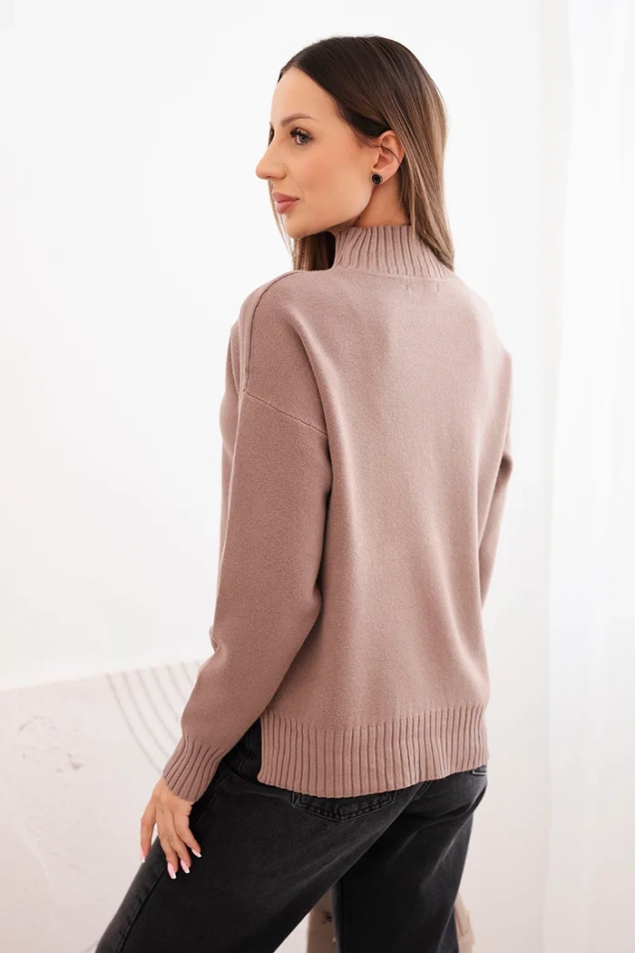 This women's sweater with a mock turtleneck is an excellent choice for cooler days – it combines comfort, a trendy look, and high-quality craftsmanship. Made from soft, viscose fabric with a blend of modal and polyamide, it is incredibly pleasant to the touch and drapes well on the silhouette.