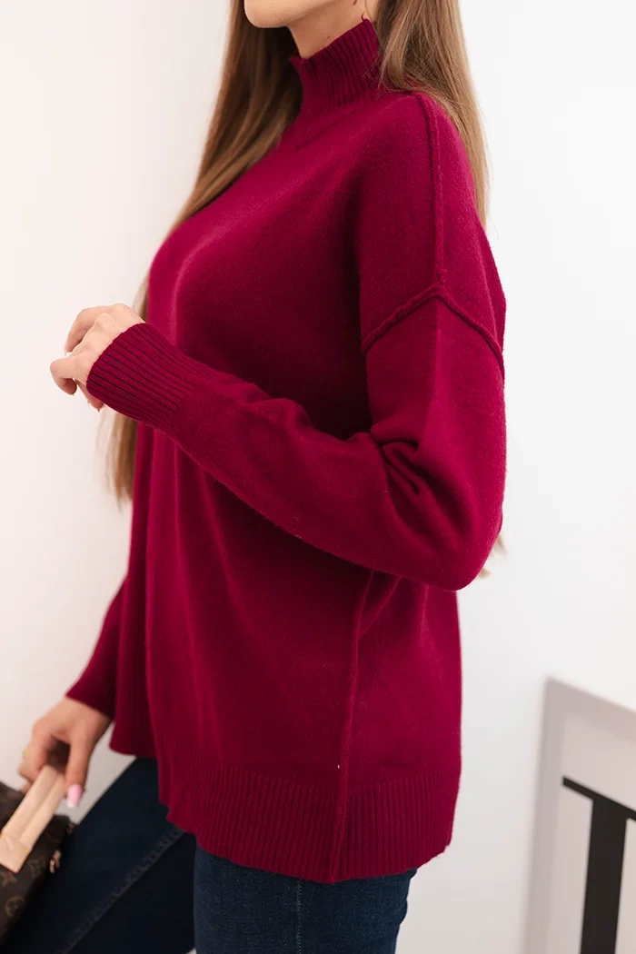 Women's viscose sweater with a ribbed turtleneck and loose fit burgundy