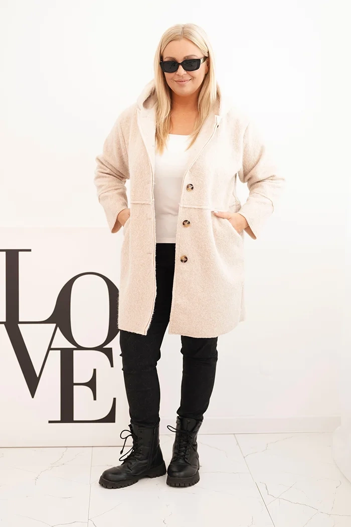 A stylish women's coat with a practical hood is the perfect choice for the autumn-winter season. The model is made of high-quality material that provides warmth, comfort, and ease of wear. The large button closure adds elegance, while the slightly oversized cut ensures that the coat fits beautifully on various body types. The large side pockets enhance functionality, making it not only a fashionable but also a practical choice.