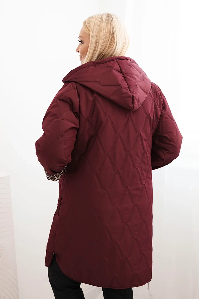 Trendy and functional Plus Size women's jacket is an excellent choice for cooler days. The model features an original leopard print lining, which looks stunning when the sleeves are rolled up or the hood is unzipped. Thanks to its quilted structure, the jacket is stylish and modern while providing adequate warmth.
