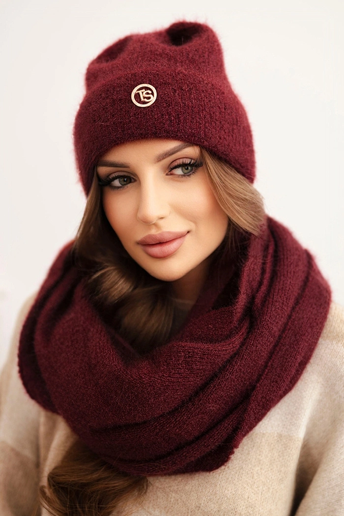 Ladies' set with a hat and a scarf made of soft knit burgundy