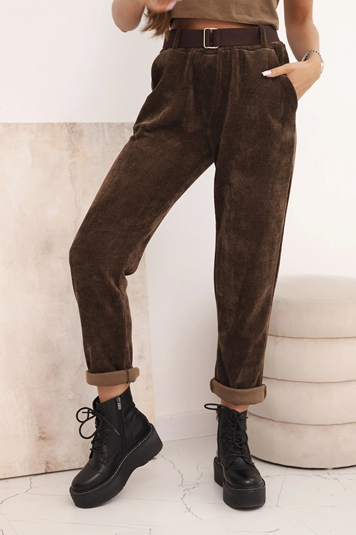 If you are looking for the perfect everyday pants that combine comfort with a trendy look – this model will be a hit! Women's pants with a subtle stripe belt are made from soft, stretchy material that beautifully adapts to your silhouette and provides freedom of movement.