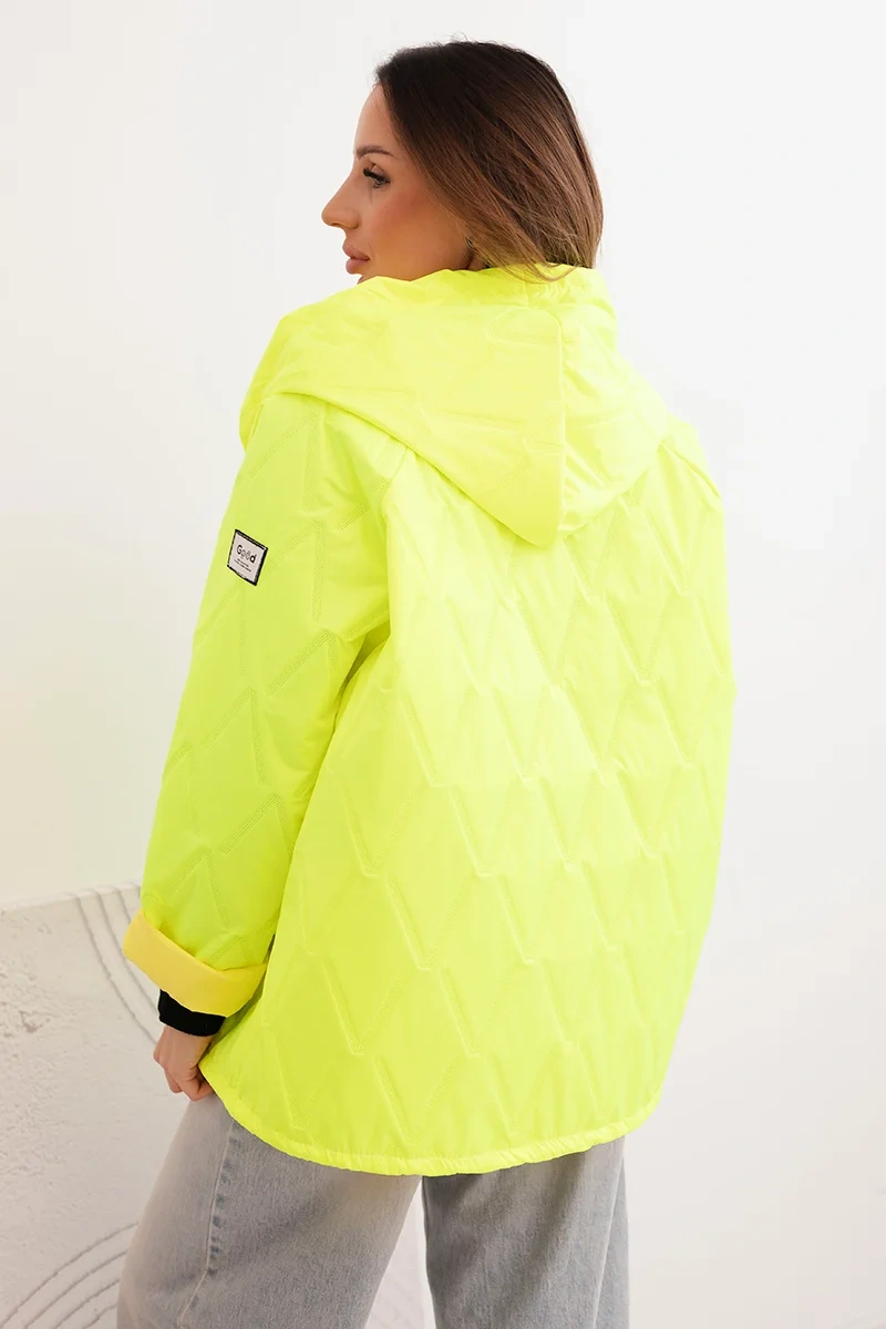 Are you looking for the perfect jacket for transitional days? This women's quilted jacket with a hood is an excellent choice for women who value style, comfort, and functionality. Made from lightweight material, it provides comfort and protection against the cold without weighing down your silhouette. The modern quilted pattern with a geometric motif adds a fashionable touch, and the loose fit makes the jacket look great on any figure.
