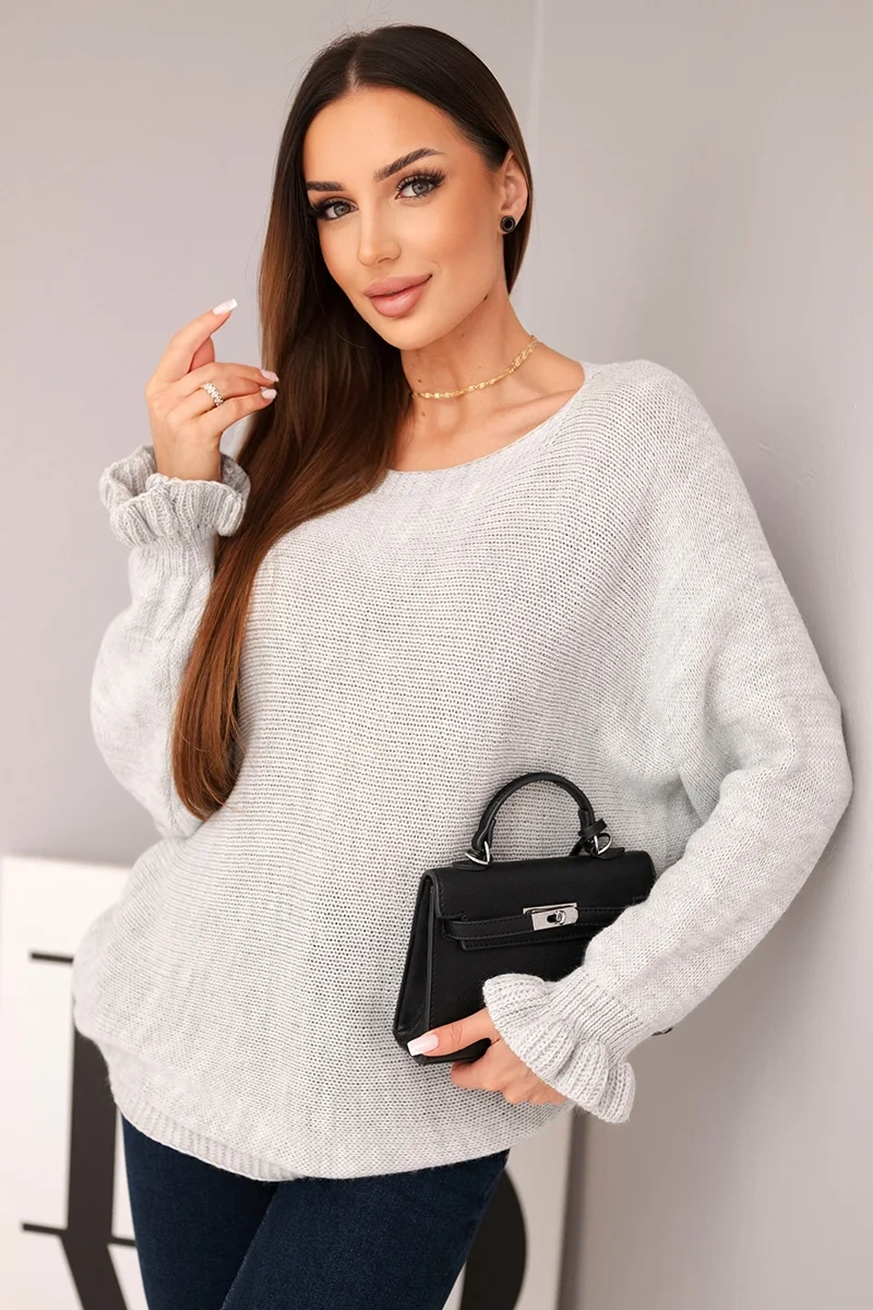 This unique women's sweater is the perfect combination of elegance and everyday comfort. Made from a blend of high-quality wool, mohair, and acrylic, it provides warmth and a pleasant wearing experience even on cooler days. The loose fit with drop sleeves ensures freedom of movement, while the decorative ruching on the cuffs adds a subtle charm to the overall design.