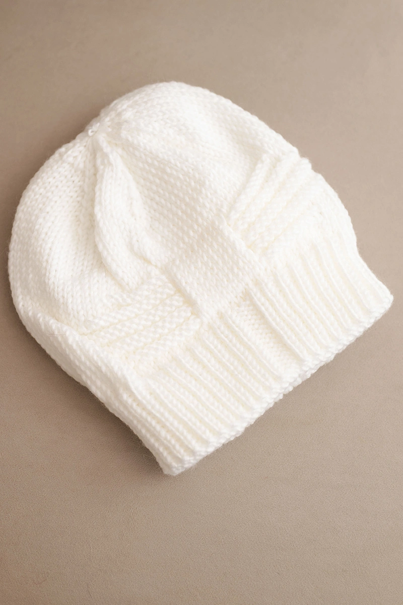 Women's winter hat acrylic with decorative weave K462 white