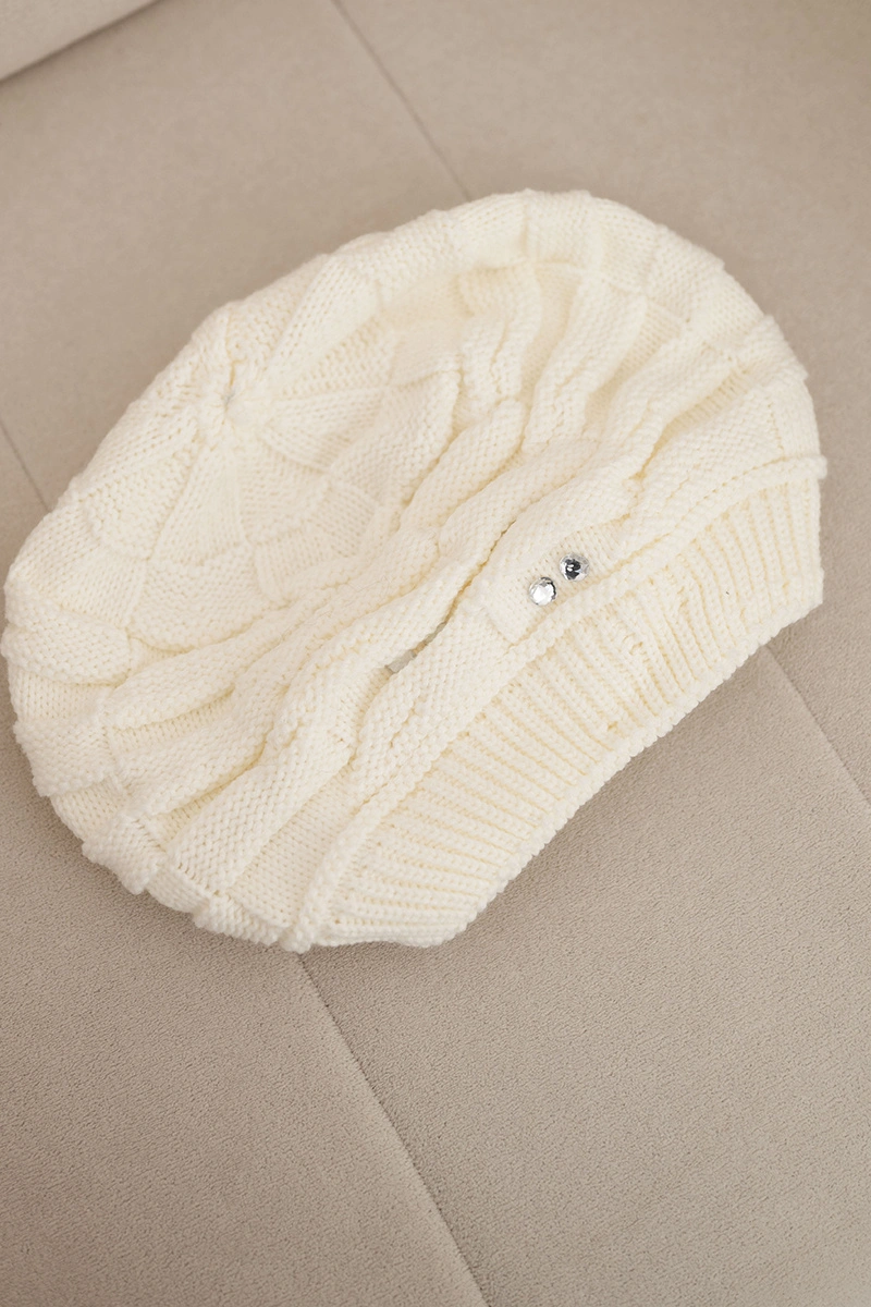 Stylish and warm women's hat produced in Poland, made of high-quality yarn with a high content of natural wool. The classic cable knit combined with subtly shimmering crystals gives it an elegant and feminine character. Perfect for cold days — it combines fashion and comfort in one accessory.