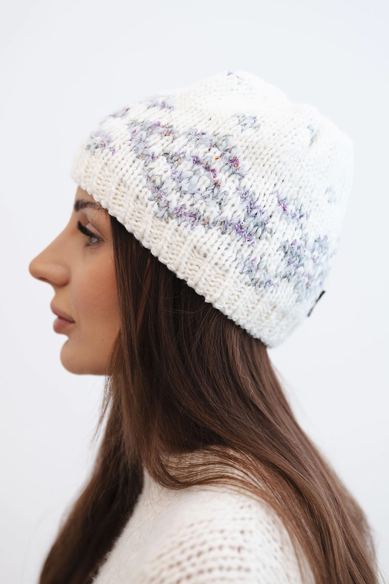 Warm women's hat in a classic winter style with a bold Norwegian pattern. Made from soft and pleasant-to-touch knit with a high wool content, it is perfect for chilly winter days. The thick weave and elastic cuff ensure a perfect fit and effective protection against wind and frost.