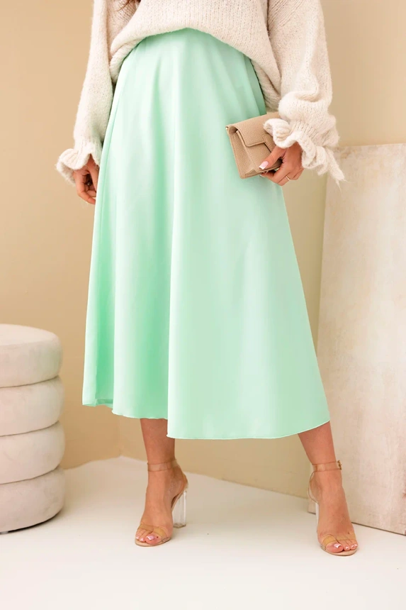 This flared women's skirt is an excellent choice for women who value style, comfort, and elegance. Made from high-quality, flowing viscose with added elastane, it beautifully conforms to the silhouette and provides freedom of movement. Its flared cut adds lightness and feminine charm, making it perfect for both everyday wear and special occasions – from meetings with friends to more formal outings.