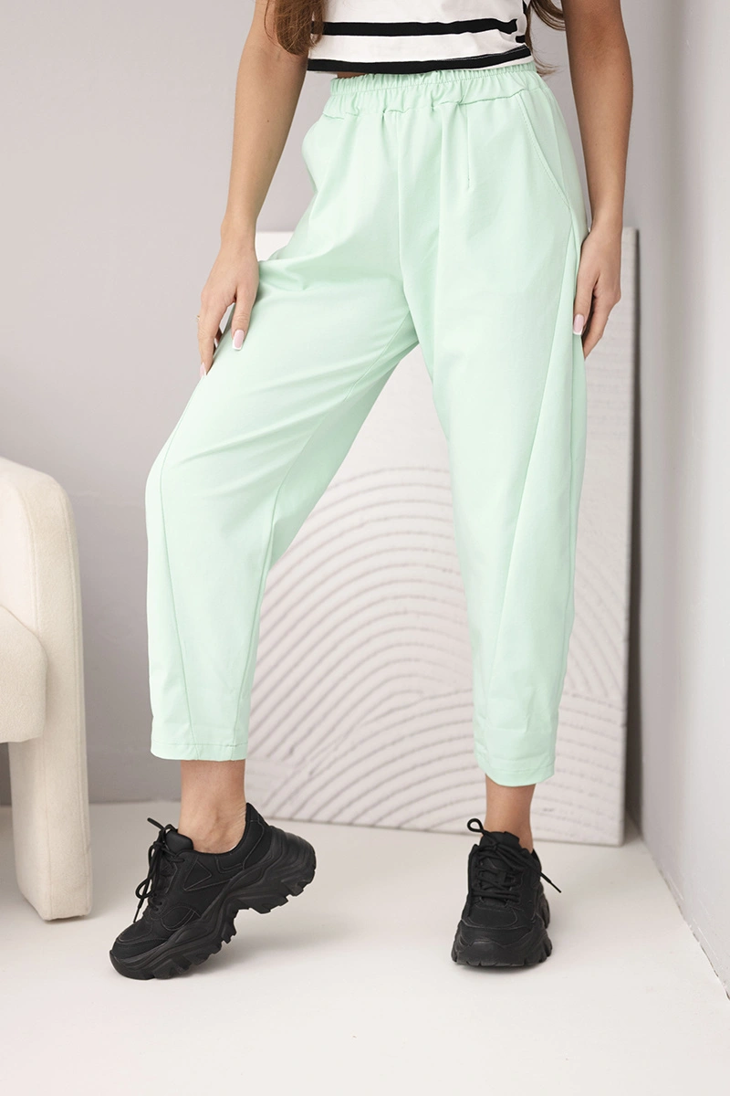Summer Punto trousers are a great choice for women who value comfort and a fashionable look. Made of light and breathable material, they are ideal for warm days. Their loose cut provides freedom of movement, and the elastic waistband with adjustable lacing guarantees a perfect fit to the figure. The trousers have practical pockets that add functionality and casual character. The universal design makes them perfect for both everyday styling and summer trips. Summer Punto is a combination of comfort and elegance - you can match them with your favorite blouse, T-shirt or top, creating a light and stylish styling for any occasion. Choose Summer Punto trousers and feel fashionable all season long! The size is universal and will be suitable for women wearing sizes S, M or L.