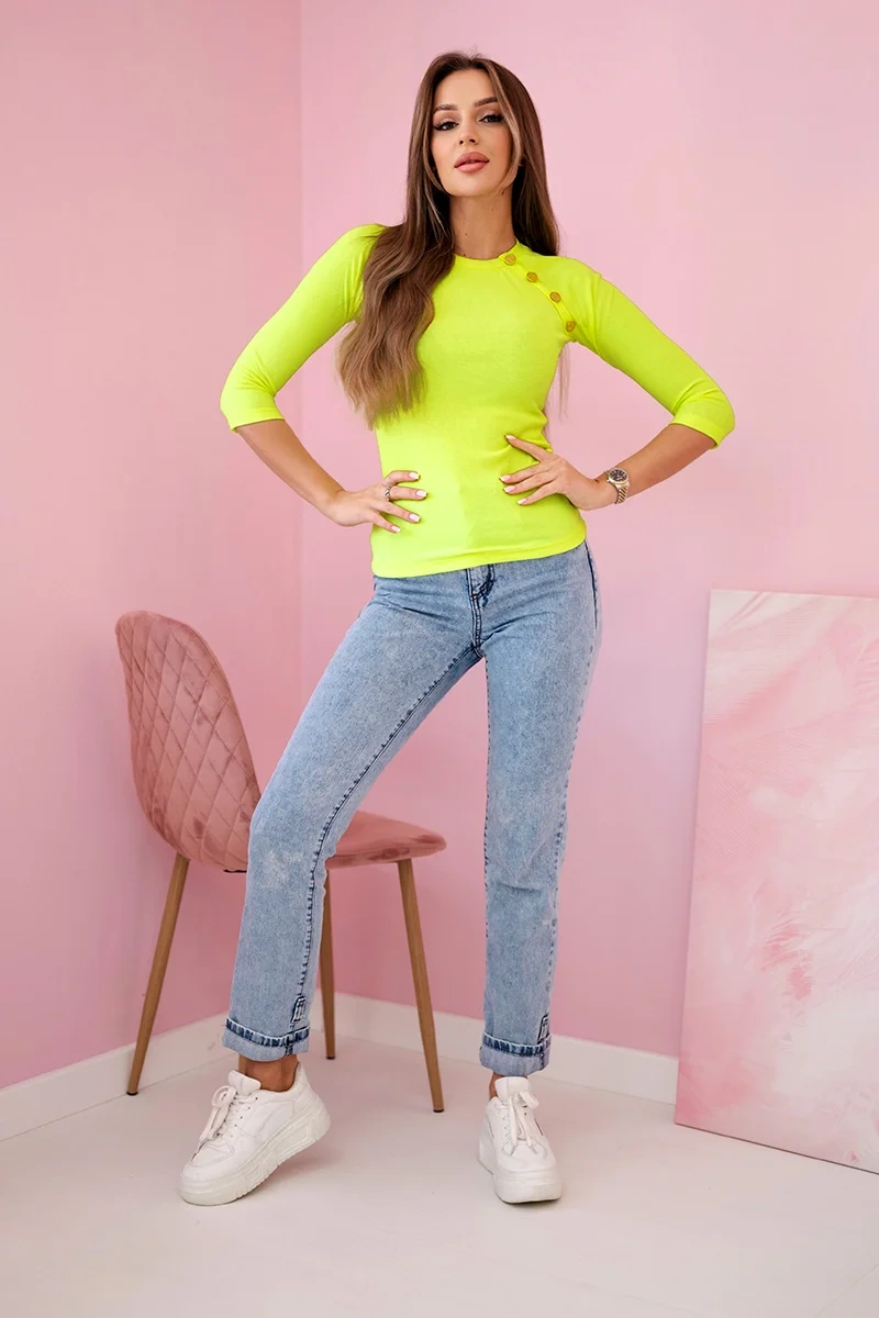 Wir präsentieren Ihnen eine modische Bluse. Taillierte Bluse mit zwei Reihen von Zierknöpfen auf der Vorderseite. Langarm, gerippter Stoff. Ein hervorragendes Angebot für alle Damen. Die Bluse ist aus hochwertigem Material gefertigt. Die Größe ist universell und passt Damen mit Größe S, M oder L.