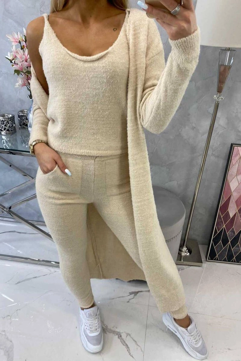 Wir präsentieren Ihnen ein modisches 3-teiliges Set. Das Set besteht aus einer Tagesdecke, Bluse und Hose. Das Set ist aus hochwertigem Material gefertigt. Die Größe ist universell und passt Damen jeder Größe S, M, L.