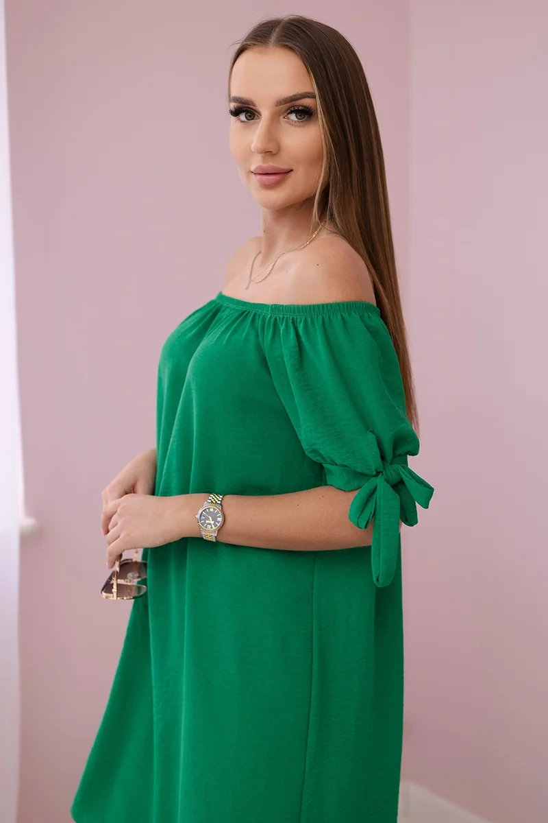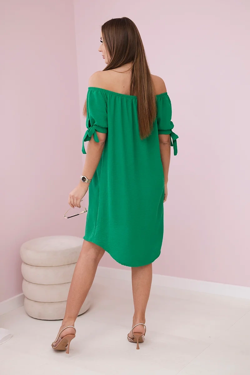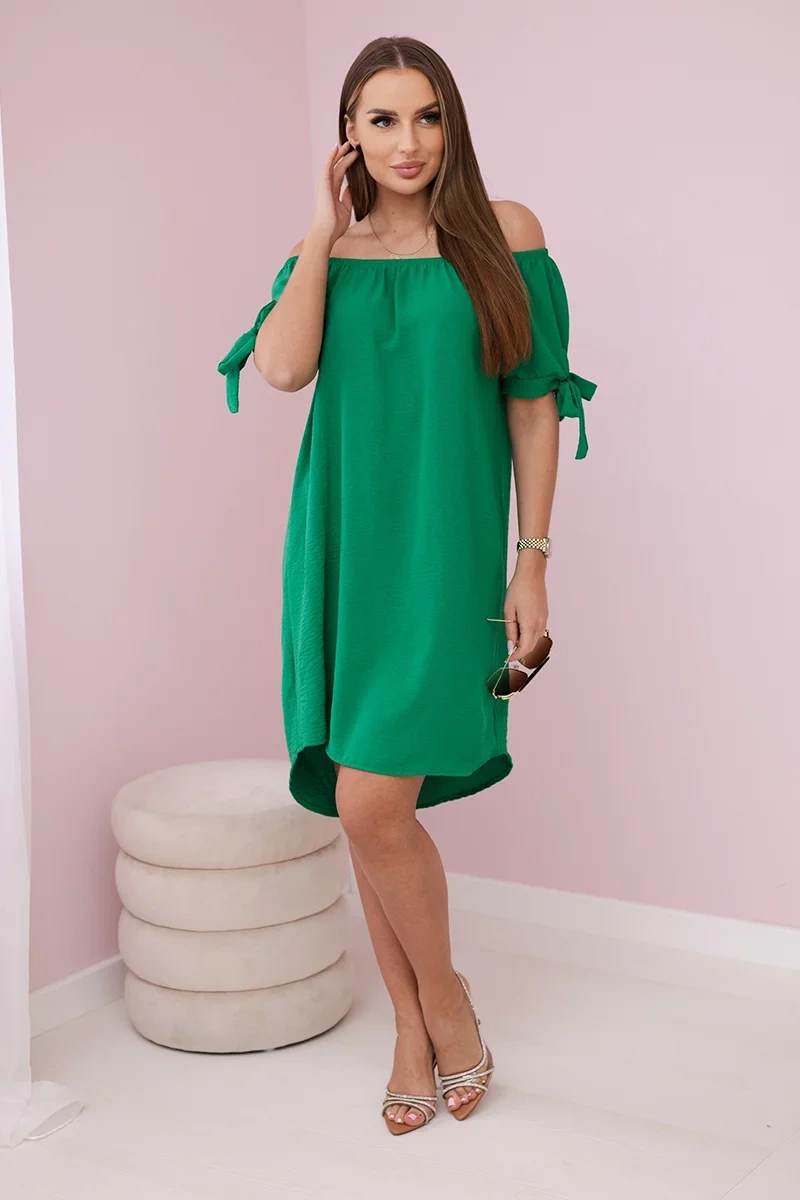 Ein an den Ärmeln gebundenes Kleid ist ein modisches Detail, das dem Outfit Leichtigkeit und Originalität verleiht. Diese Art von Kleidern ist perfekt für Sommertage und verleiht Ihrem Outfit einen femininen und charmanten Look. Sie ermöglichen es Ihnen, das Kleid durch Anpassen der Bänder an Ihre individuellen Vorlieben anzupassen. Solche Kleider sind eine ausgezeichnete Wahl für Menschen, die Wert auf modische Formen legen und ihre Kreativität durch die Wahl der Kleidung zum Ausdruck bringen möchten. Ein Kleid mit Bindebändern an den Ärmeln kann sowohl eine elegante Option für besondere Anlässe als auch ein lässiges Element Ihrer Alltagsgarderobe sein. Die Größe ist universell und eignet sich für Frauen, die Größe S, M oder L tragen.