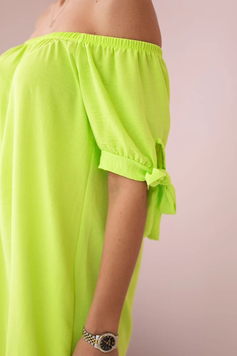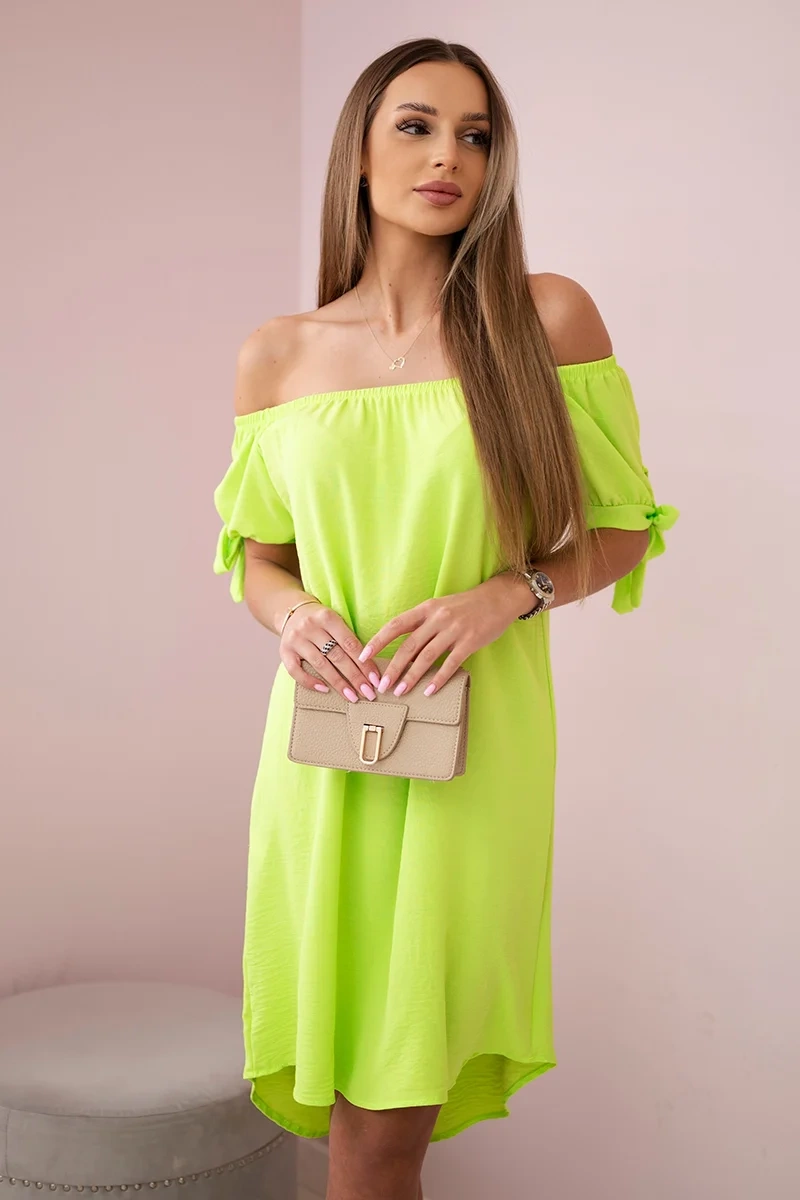 Ein an den Ärmeln gebundenes Kleid ist ein modisches Detail, das dem Outfit Leichtigkeit und Originalität verleiht. Diese Art von Kleidern ist perfekt für Sommertage und verleiht Ihrem Outfit einen femininen und charmanten Look. Sie ermöglichen es Ihnen, das Kleid durch Anpassen der Bänder an Ihre individuellen Vorlieben anzupassen. Solche Kleider sind eine ausgezeichnete Wahl für Menschen, die Wert auf modische Formen legen und ihre Kreativität durch die Wahl der Kleidung zum Ausdruck bringen möchten. Ein Kleid mit Bindebändern an den Ärmeln kann sowohl eine elegante Option für besondere Anlässe als auch ein lässiges Element Ihrer Alltagsgarderobe sein. Die Größe ist universell und eignet sich für Frauen, die Größe S, M oder L tragen.