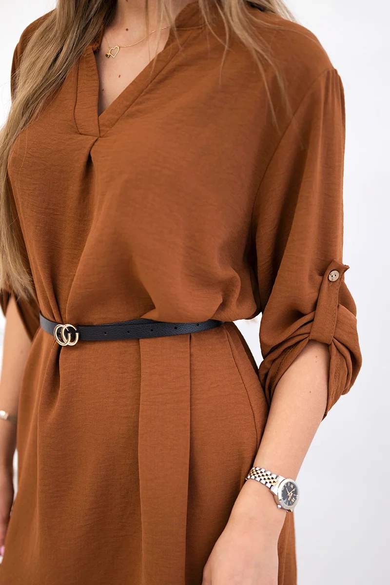 Kleid mit längerem Rücken und Gürtel Kamel