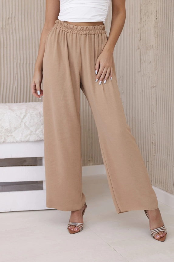 Viskosehosen mit weitem Bein sind ein einzigartiges Kleidungsstück, das Komfort und Eleganz vereint. Aus luftig-leichtem Viskosematerial gefertigt, garantiert diese Hose nicht nur Bewegungsfreiheit, sondern sorgt auch den ganzen Tag für ein leichtes und frisches Gefühl. Das weite Bein verleiht der Hose einen charakteristischen, lockeren Schnitt, der sowohl modisch als auch bequem ist. Dieses Element lässt die Hose äußerst stilvoll und beeindruckend aussehen und verleiht jedem Styling Originalität. Das universelle Design von Hosen mit weitem Bein macht sie perfekt für verschiedene Anlässe und Stile. Sie können sie sowohl zu alltäglichen, lässigen Outfits als auch zu eleganteren Sets für Geschäftstreffen oder Abendausflüge tragen. Viskosehosen mit weitem Bein sind die perfekte Wahl für Frauen, die Wert auf Komfort und Stil legen. Dank ihres universellen Designs und der hochwertigen Verarbeitung ist diese Hose ein unersetzliches Kleidungsstück, das jede Bekleidungskollektion perfekt ergänzt. Die Größe ist universell und für Frauen geeignet, die Größe S, M oder L tragen.