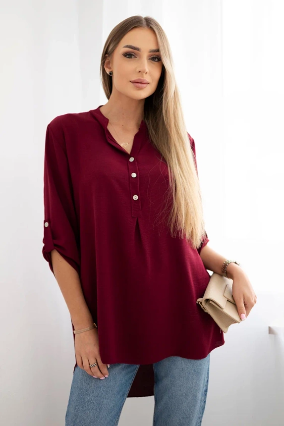 Bluse mit längerem Rücken weinrot