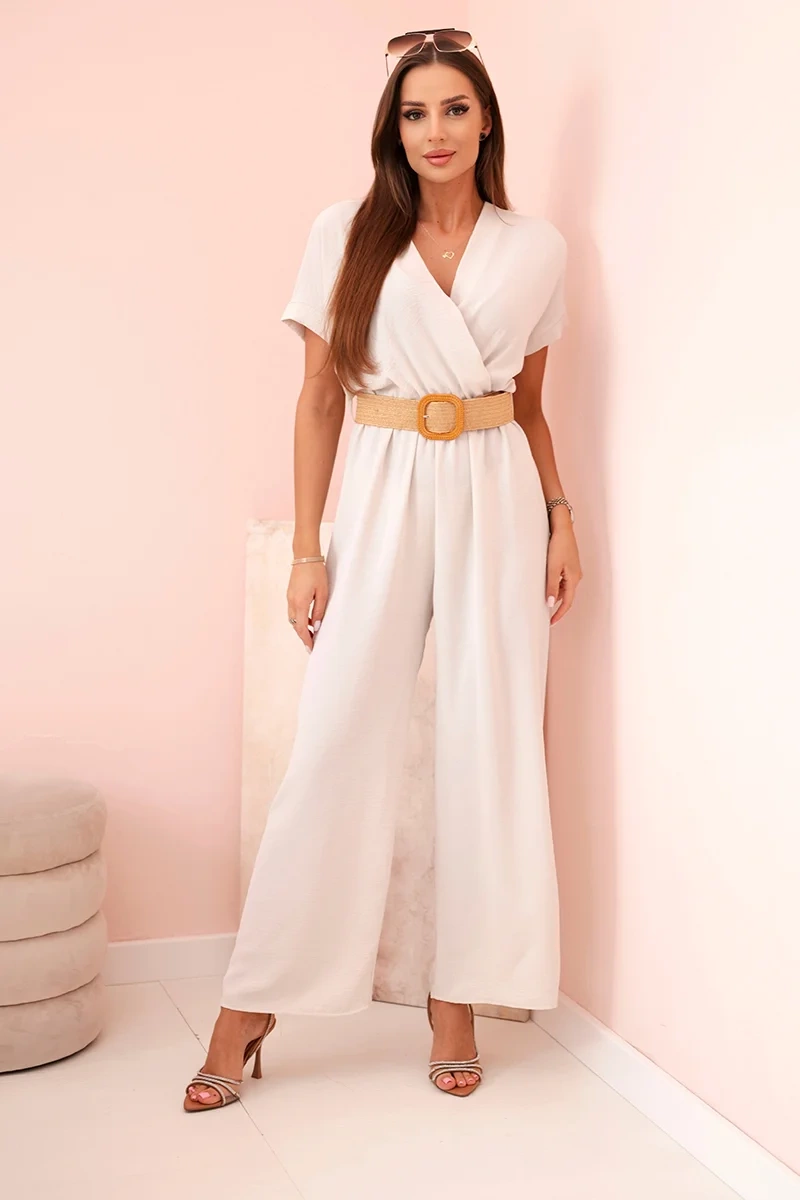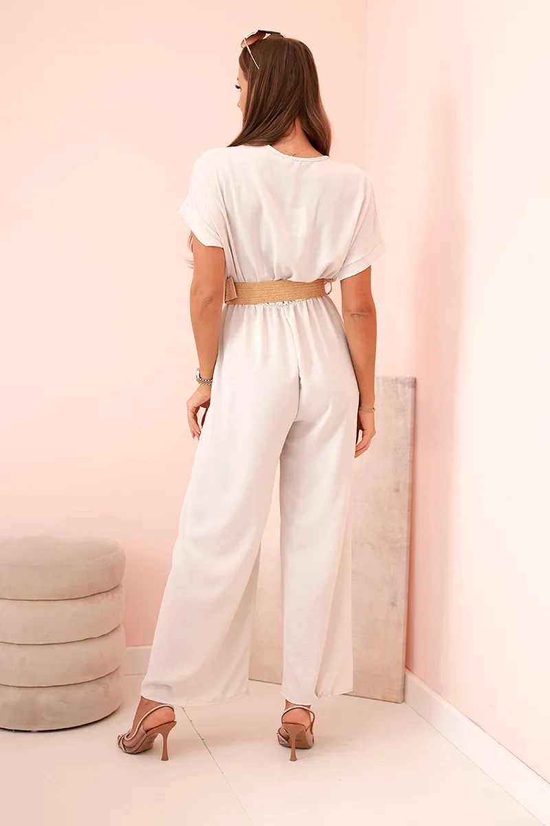 Jumpsuit mit dekorativem Taillengürtel hellbeige