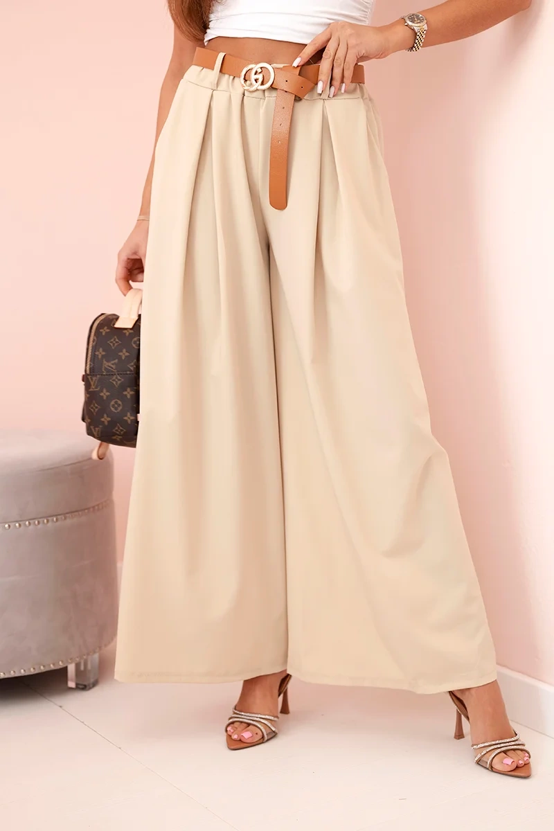 Hose mit Gürtel und weiten Beinen - hellbeige