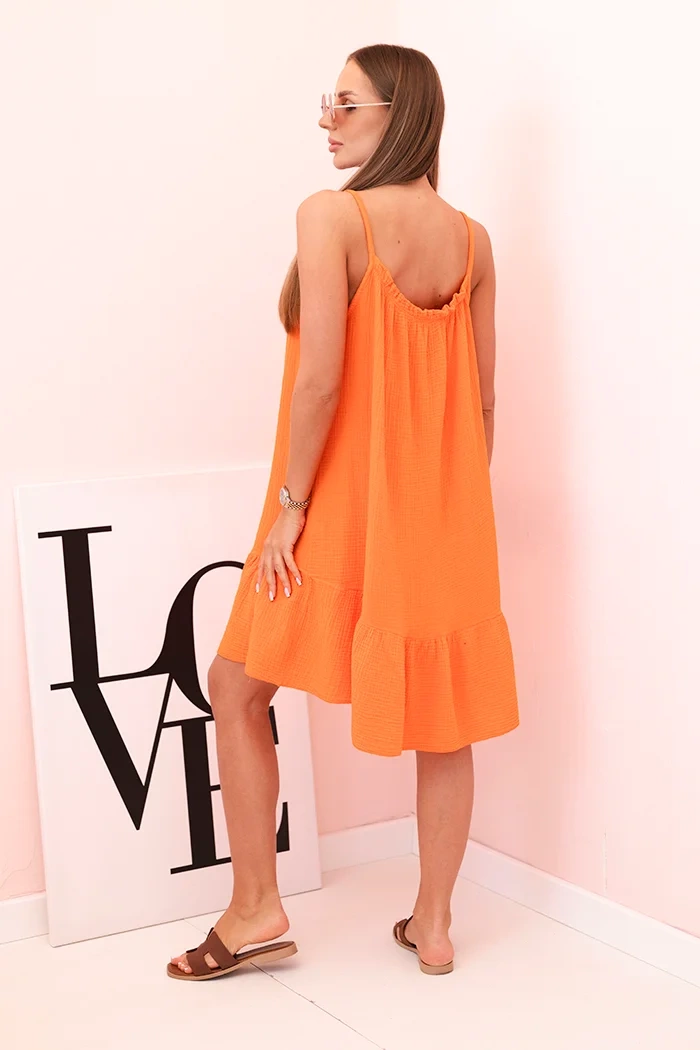Damenkleid aus Musselin mit Trägern und Rüschen orangen
