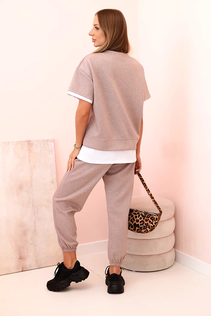 Butter-Set für Damen mit kurzen Ärmeln und Hose beige melange