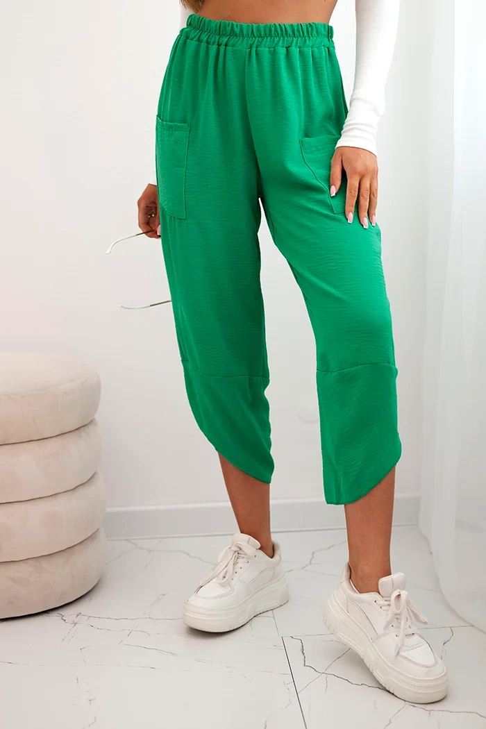 Hose mit weitem Bein und Taschen grün