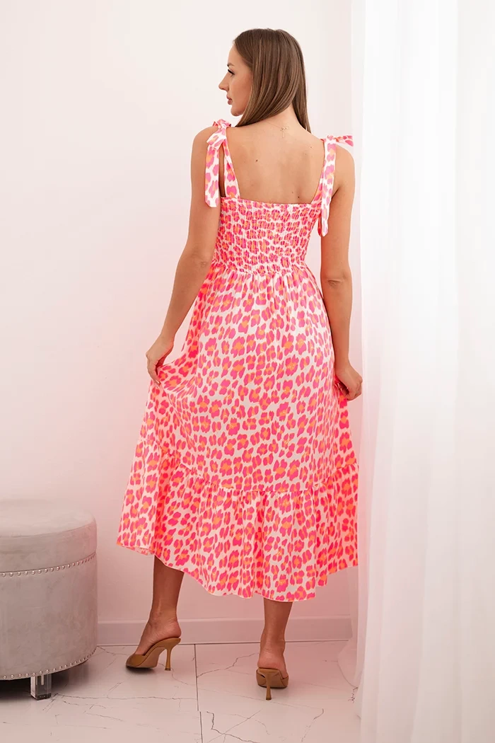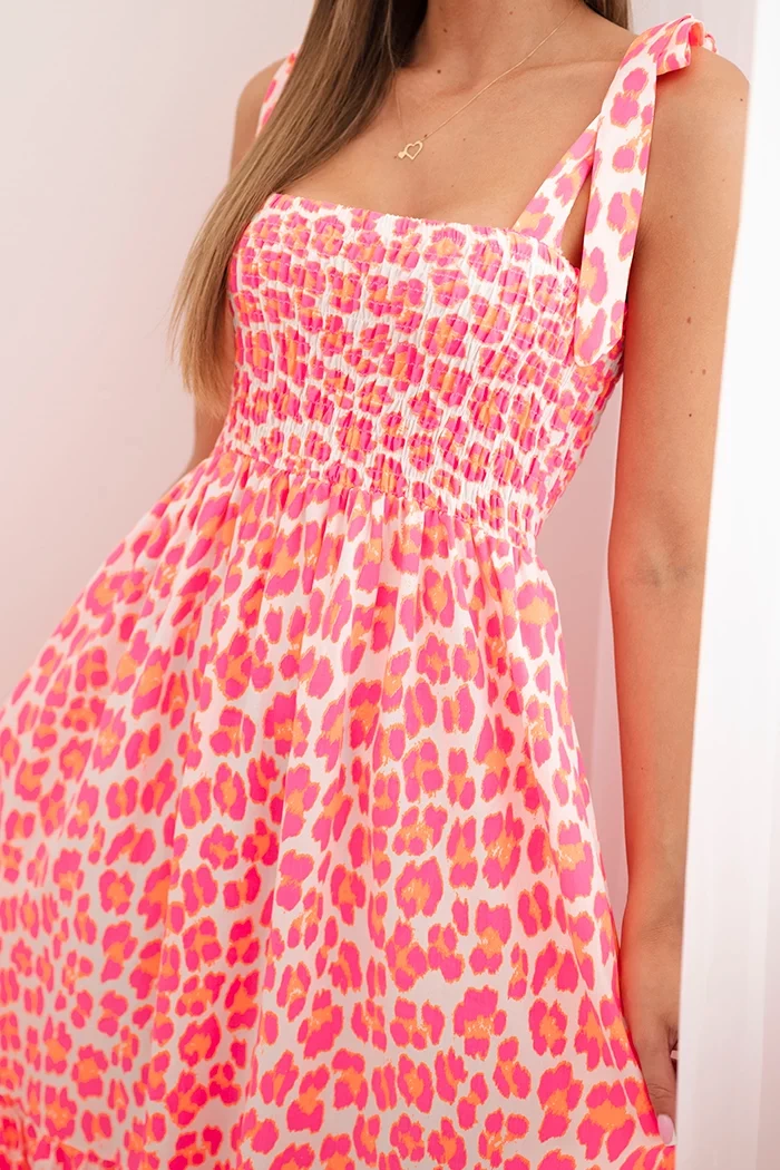 Dieses Damenkleid mit Trägern ist die perfekte Wahl für den Sommer, da es Komfort mit modischem Stil verbindet. Das Modell mit elastischer Raffung im oberen Bereich passt sich schön der Figur an, betont die weiblichen Formen und bietet maximalen Tragekomfort. Die Schleifen an den Schultern verleihen einen mädchenhaften Charme und ermöglichen eine leichte Längenregulierung. Der Rockteil ist leicht ausgestellt, was dem Kleid eine romantische und luftige Note verleiht – ideal für Spaziergänge, den Urlaub oder sommerliche Ausflüge. Das Kleid besteht aus leichtem und atmungsaktivem Viskosestoff, der sich hervorragend für warme Tage eignet. Das farbenfrohe Muster zieht die Blicke auf sich und unterstreicht das sommerliche Flair des Outfits. Eine ideale Option für Frauen, die Stil, Komfort und italienische Qualität schätzen. Die Größe ist universell und geeignet für Damen mit Größe S, M oder L.
