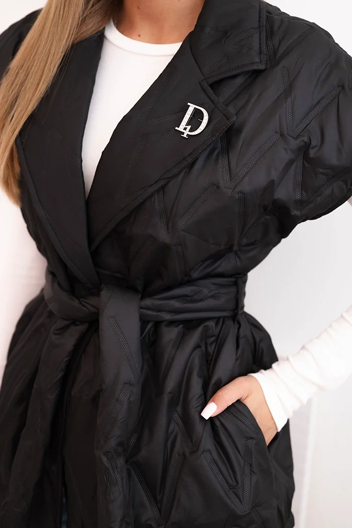 Damenweste mit Gürtel und breitem Kragen schwarz