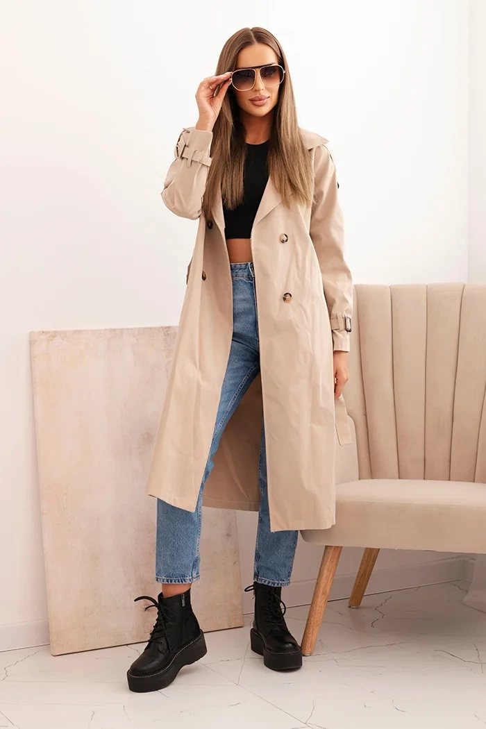 Der Mantel eignet sich hervorragend für den Frühling und Herbst – zu Kleidern, eleganten Hosen sowie für lässige Outfits mit Jeans. Dank der Maße ist er geeignet für Damen, die die Größen M, L oder kleines XL tragen – der leicht taillierte Schnitt betont die Figur schön.
