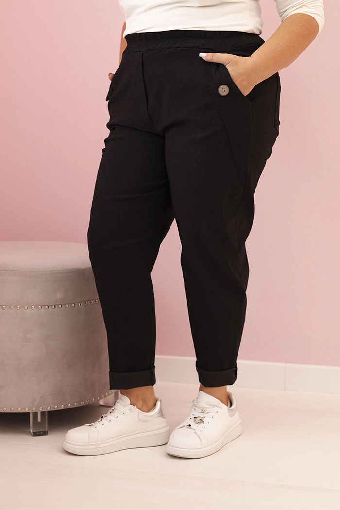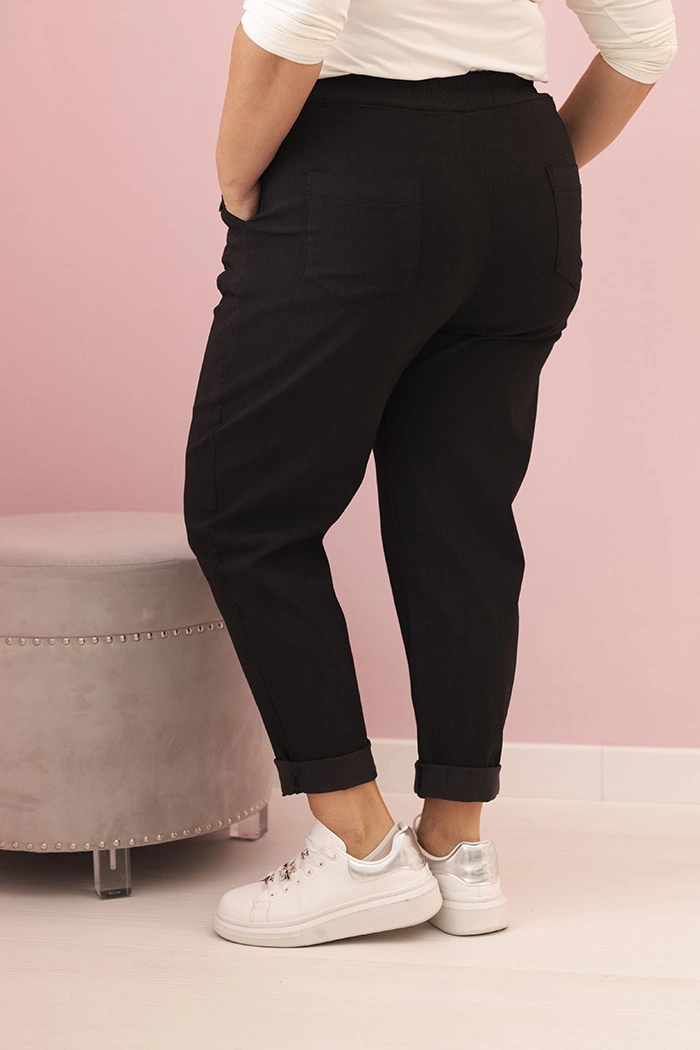Bequem, stilvoll und ideal für den Alltag – diese Damen-Hosen in Übergrößen aus Viskose und Elasthan sind ein tolles Angebot für Frauen, die Komfort und modisches Aussehen schätzen. Der elastische Bund passt sich der Figur an, ohne zu drücken, und die schmal zulaufenden Hosenbeine mit Bündchen verleihen einen modernen Charakter. Das weiche Material garantiert angenehmes Tragen den ganzen Tag.