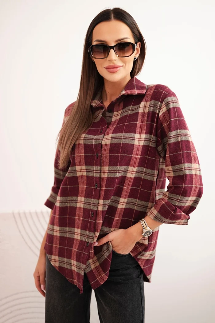Das Damenhemd im klassischen Karomuster ist ein zeitloses Kleidungsstück, das sich perfekt für alltägliche Stylings eignet. Das Modell mit verlängertem Rücken und hochgekrempelten Ärmeln ist eine Kombination aus Komfort und Stil, die Sie von der ersten Anprobe lieben werden. Das Hemd sieht sowohl zu Jeans als auch zu Leggings hervorragend aus – ideal für die Arbeit, zum Einkaufen oder für ein Treffen mit Freunden.