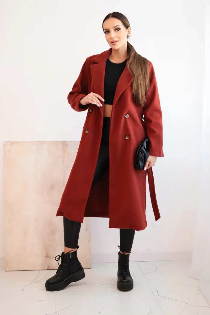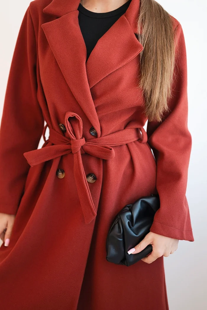 Damenmantel aus Wildleder mit tailliertem Bund rot