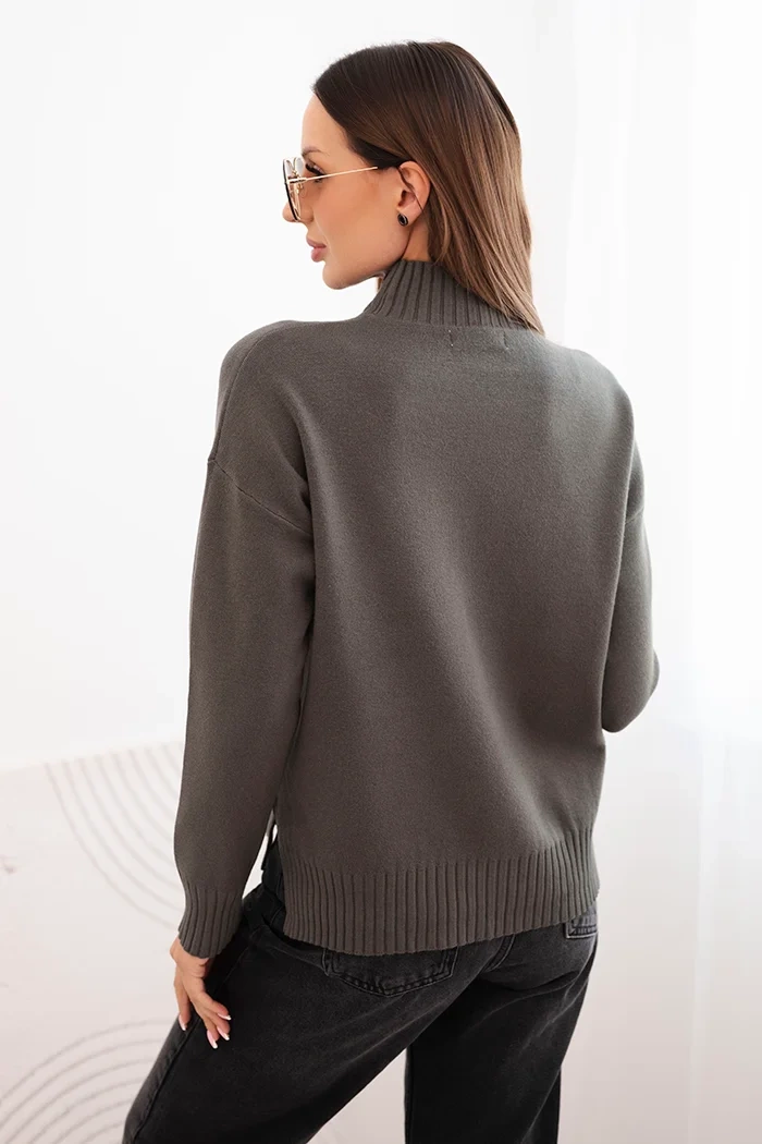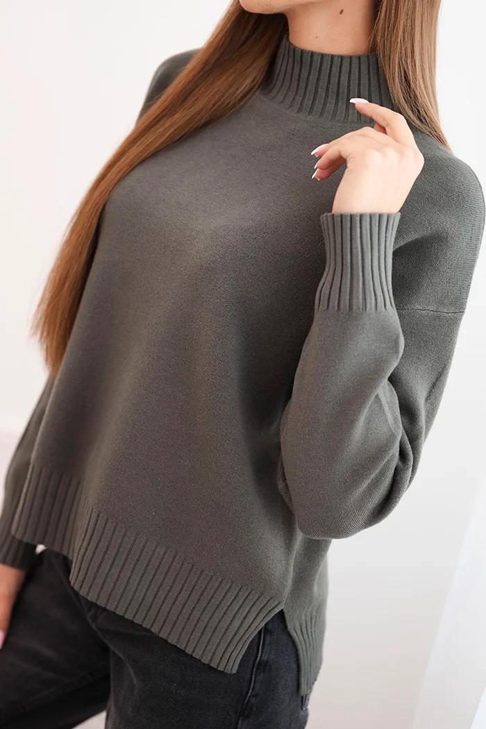 Damenpullover mit Stehkragen aus Viskose in lockerer Passform khaki