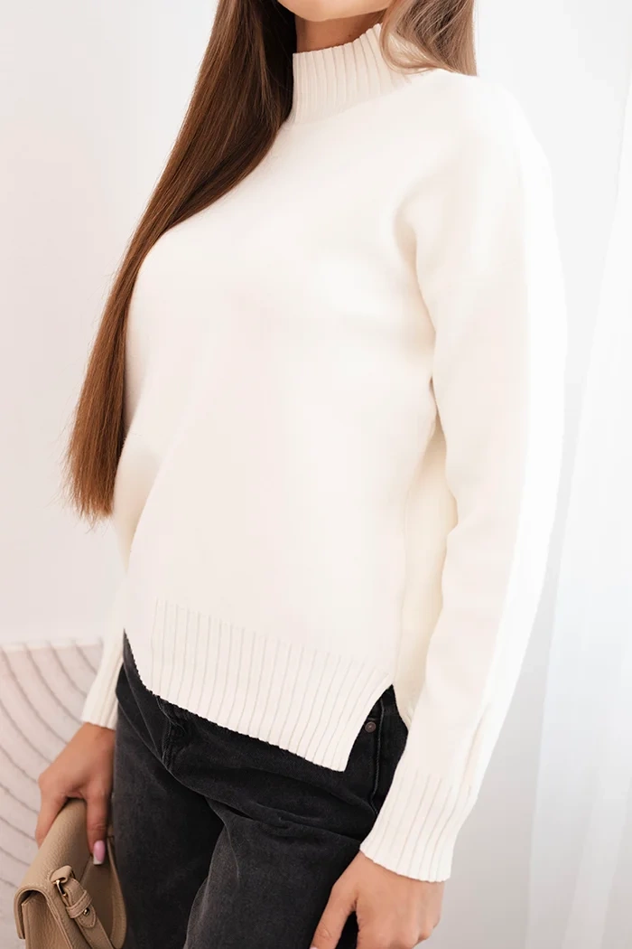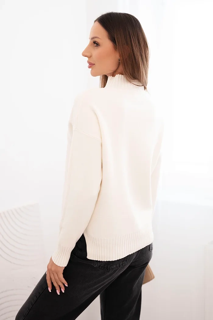 Der lockere Oversize-Schnitt schränkt die Bewegungen nicht ein und eignet sich sowohl für Alltagslooks als auch für elegantere Stylings. Der Stehkragen umschmeichelt sanft den Hals, und die gerippten Abschlüsse verleihen dem Ganzen Charakter. Dieser Pullover lässt sich hervorragend mit Jeans, einem Rock oder Leggings kombinieren – eine Basis, die du in deiner Garderobe haben musst.