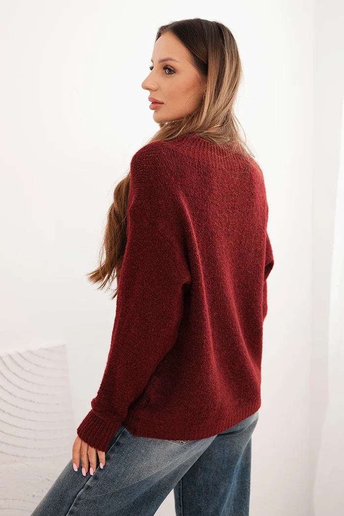 Damenpullover aus Wolle mit langen Ärmeln und rundem Ausschnitt burgunderrot
