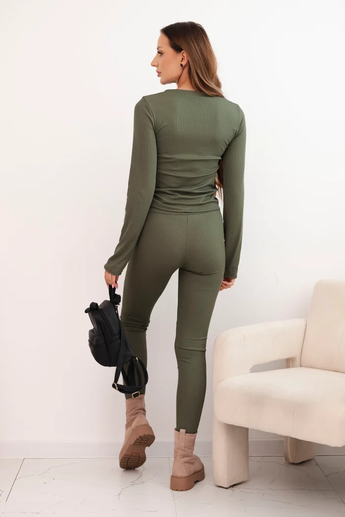 Damen Baumwollset mit langen Ärmeln und Leggings khaki