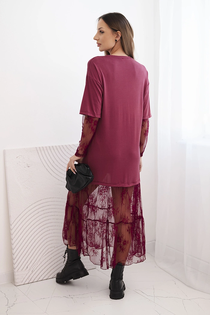 Dieses Damenkleid mit einem Tüllrock und Ärmeln ist die ideale Wahl für Frauen, die es lieben, sich mit stilvoller und gleichzeitig bequemer Kleidung abzuheben. Der Oberteil aus weichem Modalstoff sorgt für Tragekomfort, während der leicht oversized Schnitt Bewegungsfreiheit garantiert. Der leicht durchsichtige Tüllrock und die Ärmel verleihen dem Ganzen Leichtigkeit und einen modischen, femininen Charakter.