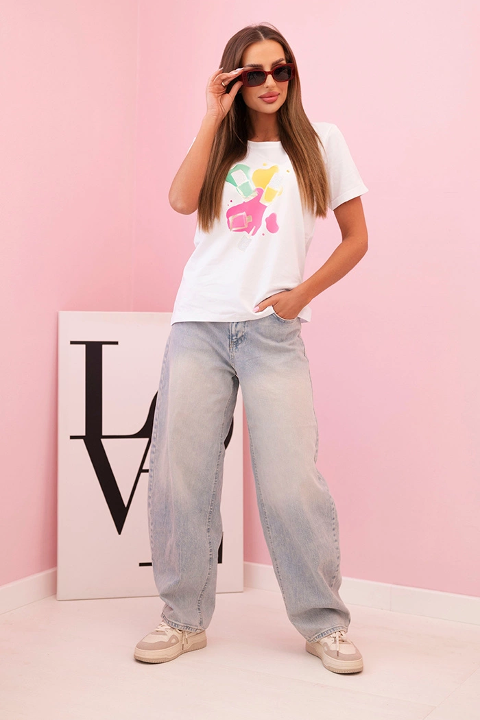 Der bunte Druck in Form von Nagellacken verleiht dem Shirt einen verspielten, modischen Charakter – ideal zu Jeans, Shorts und sportlichen Looks.