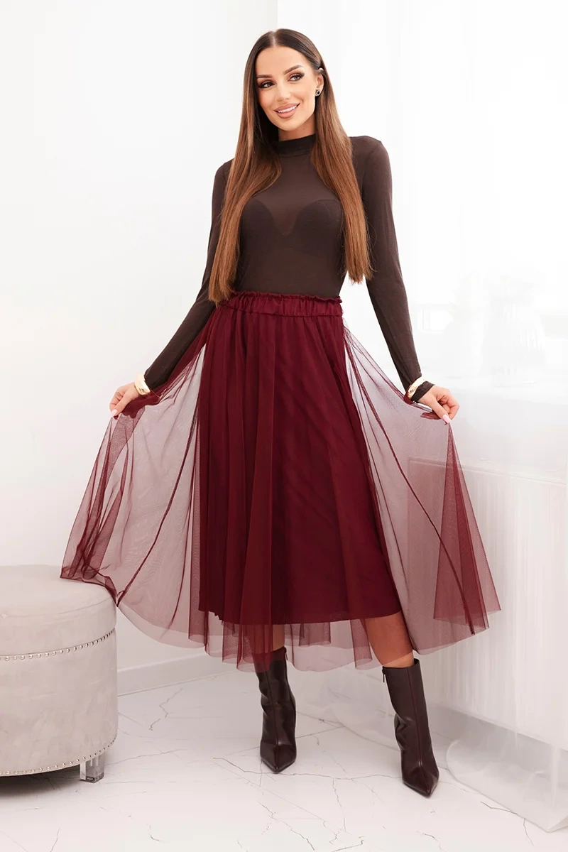 Damen Midi Tüllrock mit Viskosefutter rot bordowy