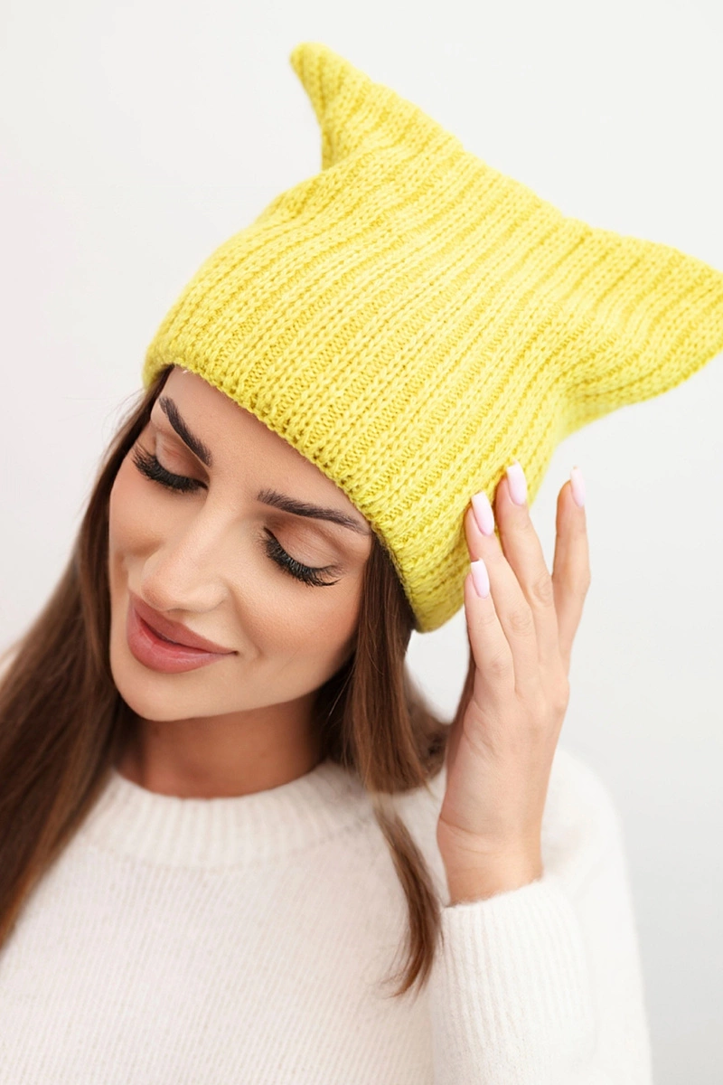 Damenwintermütze aus Wolle im Katzenstil aus geripptem Strick K419 kiwi
