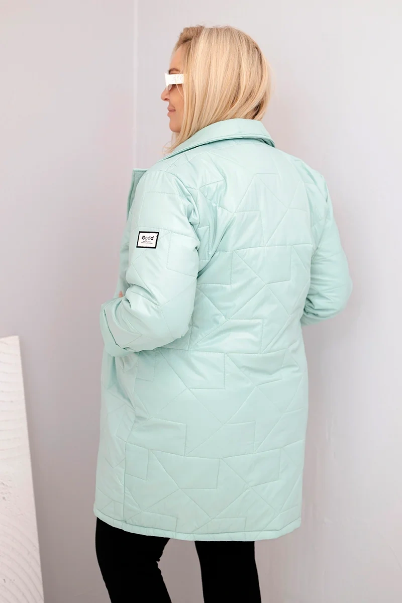 Damenjacke Plus Size gesteppt mit dekorativen Knöpfen und Kragen hell mint